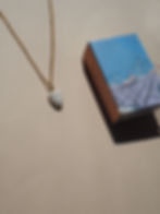 "Le bijou fait main, avec amour, celui qu’on veut pour toujours, celui aux initiales déposées sur l’arrière. Un talisman en céramique avec sa chaîne Goldfilled, à porter près du cœur. Magie de la grâce."